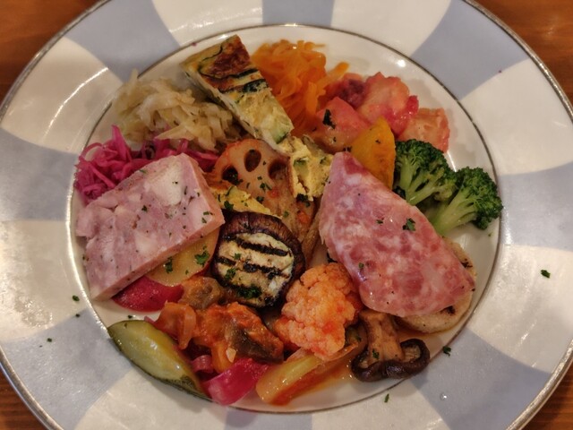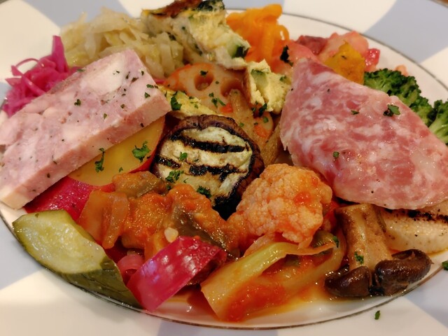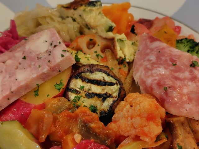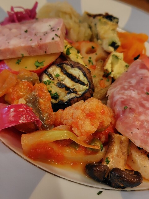 ランチコースの前菜盛り合わせの異なった調理法のお野菜が人気です。また月替わりのメニューも楽しんでいただいております。