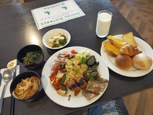 和食・洋食ともにご用意しております。お好きな料理をお好きな分だけお取り下さい。料金:2,200円税込/大人