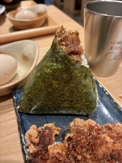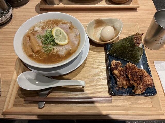 生姜中華そばと卵黄チャーシューおにぎりと唐揚げ2個で1460円。