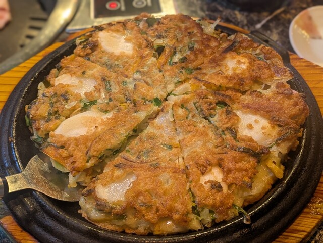 ディナー利用しました。看板メニューのチヂミは外はカリッと中はもちもちの食感で、ボリュームもしっかりあり満足感◎。サムギョプサルやデペトゥルチギなど、韓国ならではの鉄板料理も味わえて、サンチュに巻いて食...