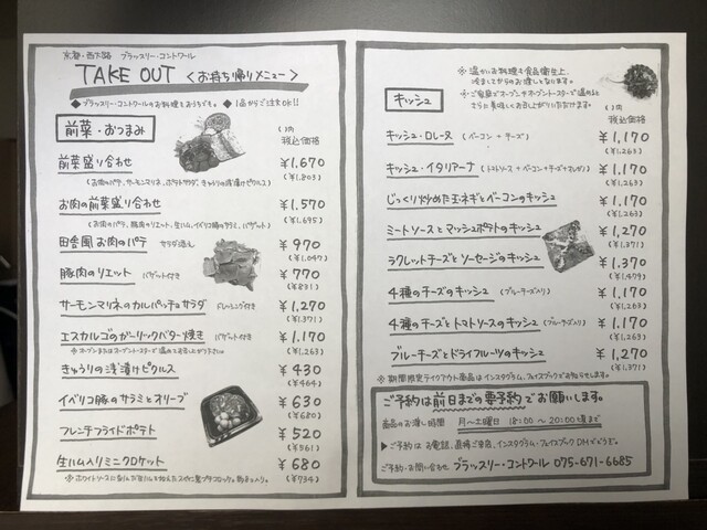 ※土曜日は12時半頃からイオンモール京都桂川1階わくわく広場さんにてブラッスリー・コントワールの「キッシュ」の販売をしています。