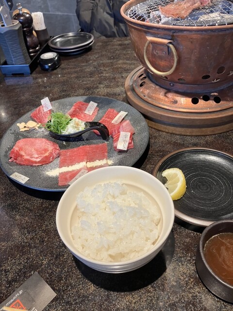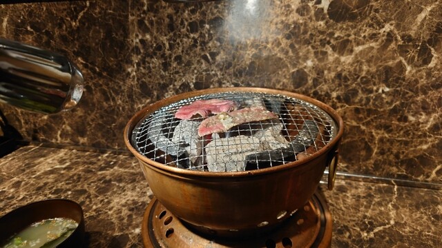 カウンターに置かれた七輪で、ジャズを聴きながら、ゆっくりと美味しい焼肉をいただく事ができます。