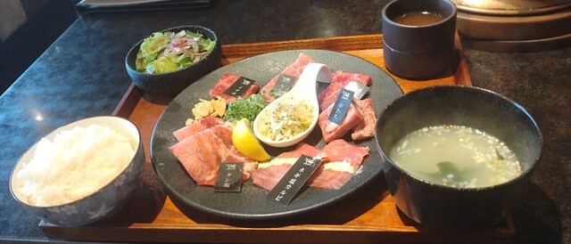 初のランチタイムにうかがいました。焼き肉ランチをいただきました。タン塩、ネギタン塩、カルビ、ももなど色んな部位を楽しめるランチでお腹いっぱいになりました。スープもご飯もサラダも付いていて大満足です。す...