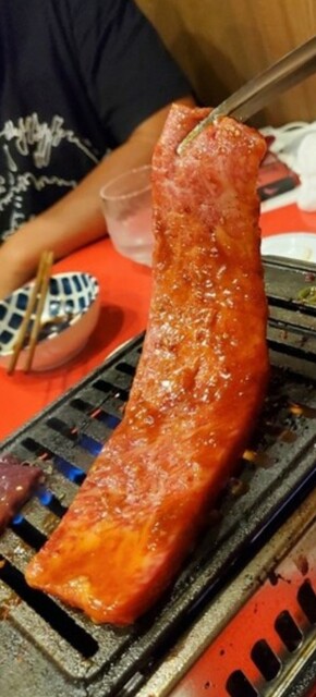 上カルビは焼くと脂身が溶けて薄くなるよう