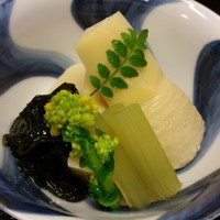 当店自慢の春の竹の子づくしコース。 3月10日よりご予約賜りますが、3月25日ぐらいまでは熊本産、高知産、山城産でのご提供となります。その後は西山産の絶品竹の子を毎朝、竹薮にまで買い付けに行きます。本当の朝掘り、それこそつい先ほど掘られたものを引き取ってきてすぐに湯がき始めますので、市場に出回っている竹の子を調理したものとは次元が違う「うまさ」です。是非ご賞味ください。