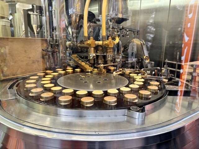 店内でカチャン、カチャンと機械で焼いていくのを見るのも楽しいですよ。