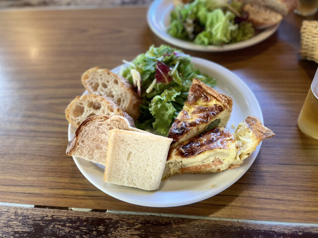 店内はカウンター席、テーブル席、ソファ席がゆったりと配置されており、自然光がやわらかく差し込む心地よい空間。観葉植物が程よい間隔で置かれ、コンクリート打ちっぱなしの天井にエメラルドグリーンの...