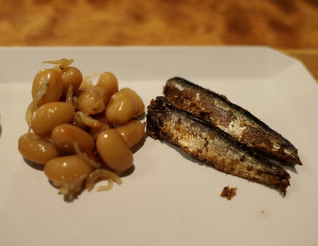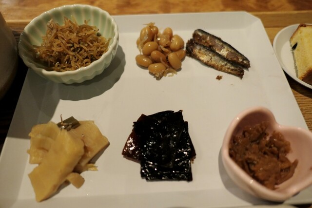 おじゃこ膳(1100円)に、オススメされた佃煮3種盛り(220円)を付けました。