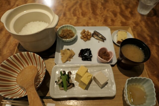 お味噌汁が具沢山(豚汁みたい)で美味しかったです♪ごはんのお供がたくさんあって、食べ進めるのが楽しかった♡
