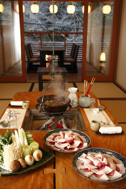 夏の風物詩としても有名な“清流の川床”をお愉しみいただけるお食事処【貴船 右源太】。「アユの塩焼き」などの“川床料理”や「氣生根鍋」など、時季ならではの味覚をお召し上がりいただけます。自慢の逸品を味わう空間も季節に応じてご用意。夏には川のせせらぎと豊かな緑に包まれる川床へ、冬には雪景色を望める囲炉裏付きの個室へとご案内いたします。季節の移ろいを感じる当店にて、ゆったりと寛ぐ時間をお過ごしください。