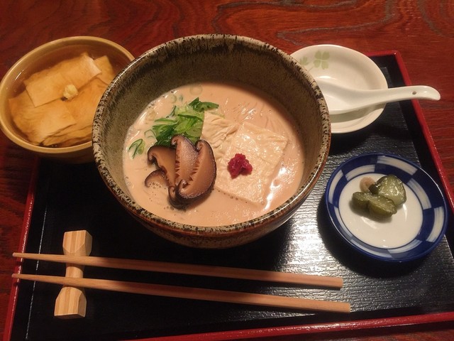 2004年7月にオープンして以来、徐々に口コミで広がり、話題のベジ系ラーメンの「元祖Vegan豆乳ラーメン」。今、話題の「Veganクロレラ豆乳ラーメン」「ウナギのかば焼き風Vegan押し寿司」をはじめ、京町屋風建築の隠れ家的空間で坪庭を眺めながら食事を楽しめるのがなんといっても魅力!Vega対応のヘルシーなメニューは若い女性に大人気!女性が1人でも入りやすい店内は、町屋カフェのようにおしゃれで落...ち着いた空間が広がり、ゆったりとしたBGMがおいしい食事の時間をより一層ひきたててくれる。京都下鴨にお越しの際はぜひぜひお立ち寄りのうえ、日本中のどこにもない当店だけの味わいをお楽しみください!