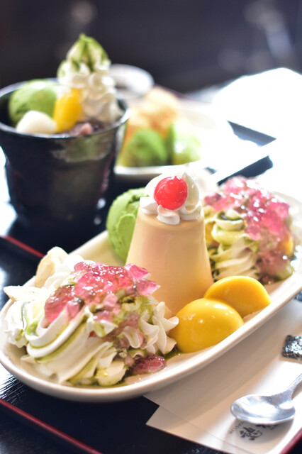 宇治で月曜空いてる店が少なくて、ここに来ちゃう 【和みぷりんパフェ】980円を頂きます✨ メニューの「和三盆を用いたプリンが好評」という文言を頼りにオーダー。 届きますっ... 詳細を見る