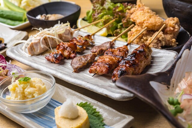 備長炭で丁寧に焼きあげた本格焼き鳥は、創業時から継ぎ足してきたタレでお召し上がりください♪人気は3種類あるつくね、せせり、こころなど。そのほか一品料理やランチもあります。飲み会にぴったりのコースは、お店自慢の串を楽しめる内容です。お酒はビール好きから初心者まで楽しめる多彩なラインナップで、専用グラスで味わうベルギービールがイチオシ!1階と2階があり、普段使いから旅行の食事まで幅広くご利用ください!