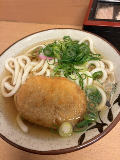 たまたま降りたった駅の出口付近にあった店 何故か惹きつけられるように、自動販売機で食券を買ってしまった。 コロッケうどん 380円 安い! コロッケうどんを食べる... 詳細を見る