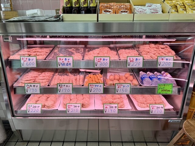 精肉店なので、お肉の切り落としや、作り置きの角煮などを購入することもでき、近隣住民の方々にも愛されている様子。年季の入った店内の雰囲気から、歴史の深さを感じられます。
