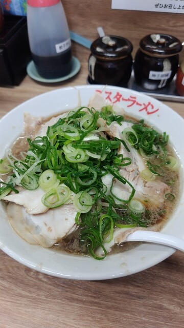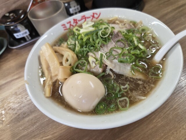 GWの雨の日、少し遅いお昼でお店に着くと、行列が店の外に10人くらい。10分ほど待ちました。こちらのお店は2回目、美味しかったので再訪です。 ◎ミスターラーメン(醤油)並 ¥850 チャーシューマシマシ+¥300 ネギもやし多め¥0 小ご飯¥160 完全に前回と同じメニューのリピで... 詳細を見る