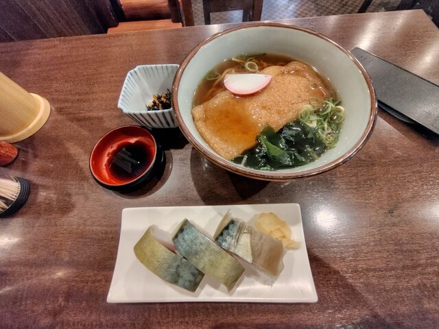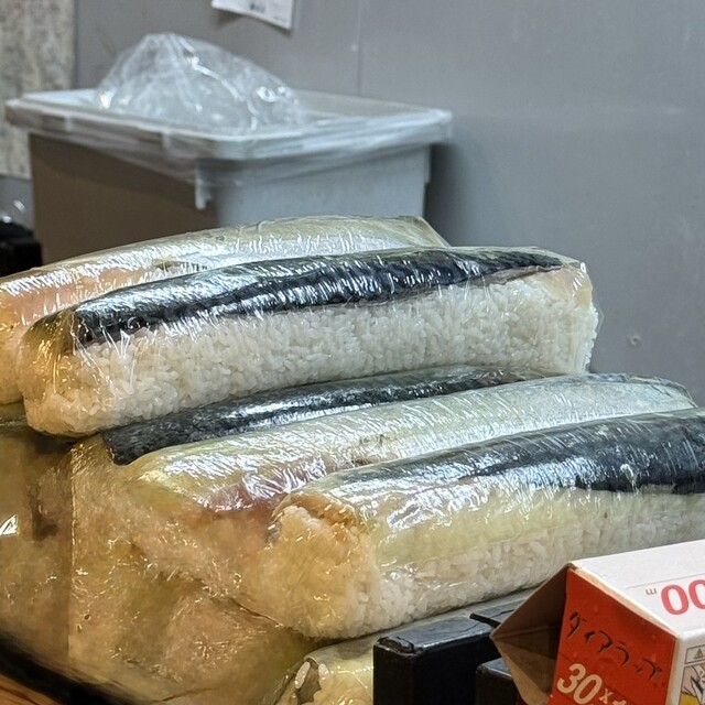 京阪電車の石清水八幡宮駅の改札前にある店。鯖の棒寿司が名物で、テイクアウトしたい人は石清水八幡宮への参拝前に注文したら帰路で受け取れる、とある。