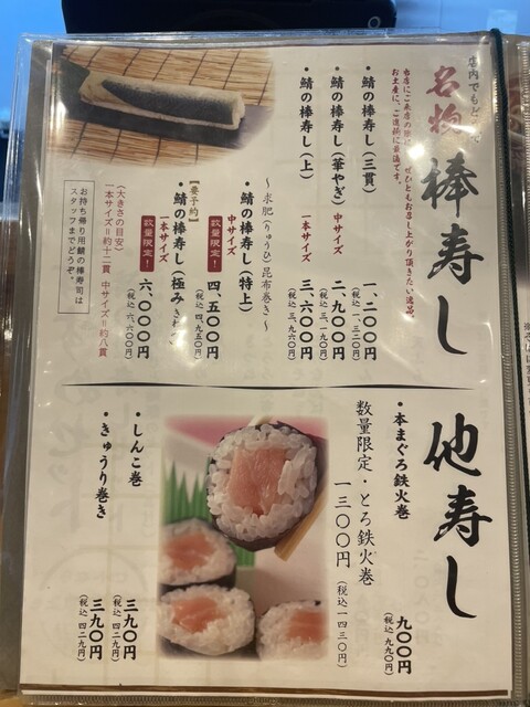 (単品鯖の棒寿司3貫1200円税込1320円)