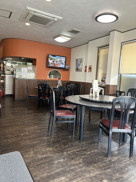 店内は、4人掛けテーブル席 が3セット、6人掛け中華用の丸テーブル席が2セットで、テーブル配置は結構ゆったりとしていました。