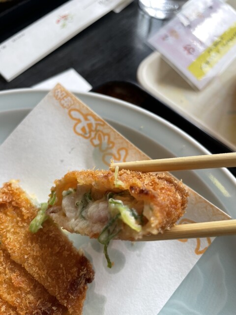 名物料理 みそとんかつは鹿児島から直送のきめ細かい肉質、品のあるさわやかな脂、旨味を兼ね備えたアベル黒豚肉を使用し、西京みそをたっぷり挟み込み仕上げてあります。京都名産九条ねぎ入りとさっぱりとしたしそ入りの2種類あります。 |