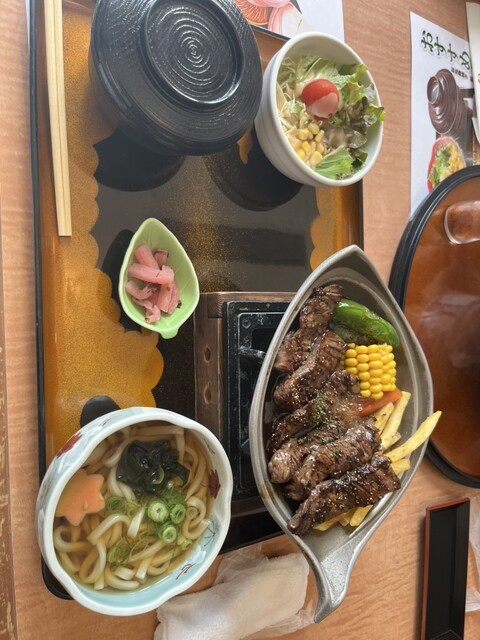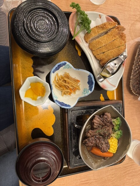 名物料理の味噌とんかつとハラミ焼肉がセットになったボリュームランチ✨️