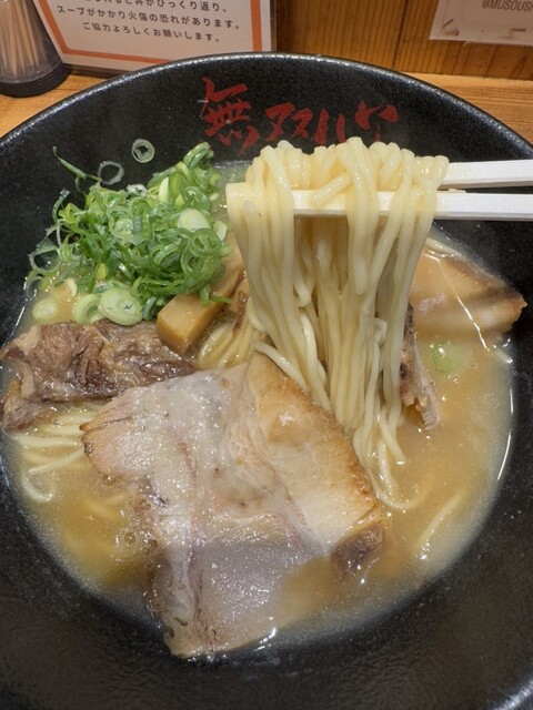 8種類の香味野菜をたっぷり使ったのヘルシーなこってり鶏とんこつスープ、店内で仕上げる"つるつるもっちり"の自家製平打麺、とろとろに煮込まれたトロチャーシューなど無双心でしか味わえないこだわりの一杯がここにあります。ご家族・お子様連れも大歓迎!もちろんお一人でも◎皆様のご来店、心よりお待ちしております!