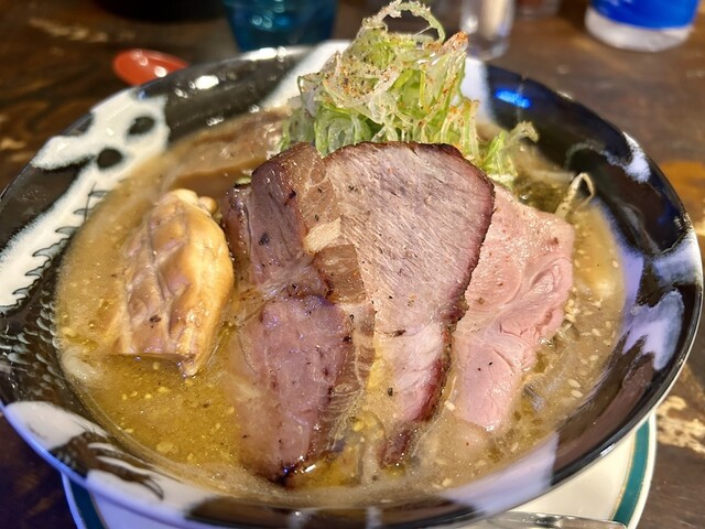 関西百名山「三嶽」を登る前に福知山のコチラへ寄り道。昔から通っている福知山の名店!同業者間では変態と呼ばれるほどラーメン作りへの拘りが凄過ぎるお店です。 注文したのは 期間&数量限定 「そみそ」 地鶏x豚骨x魚介トリプルスープに信州味噌。濃いくてスープの旨味が凄まじい。手打ち式ナチュ... 詳細を見る