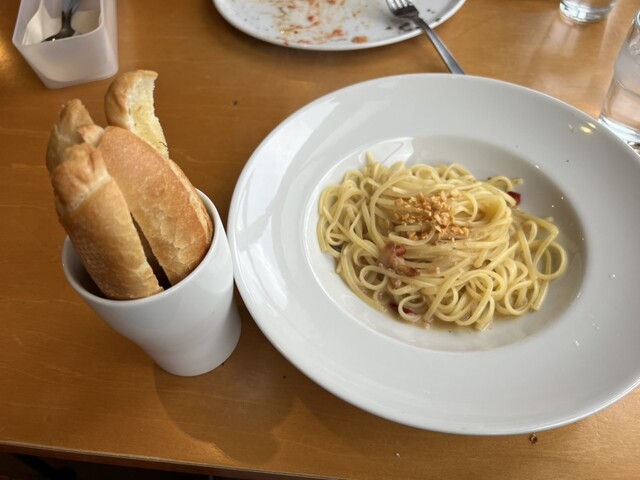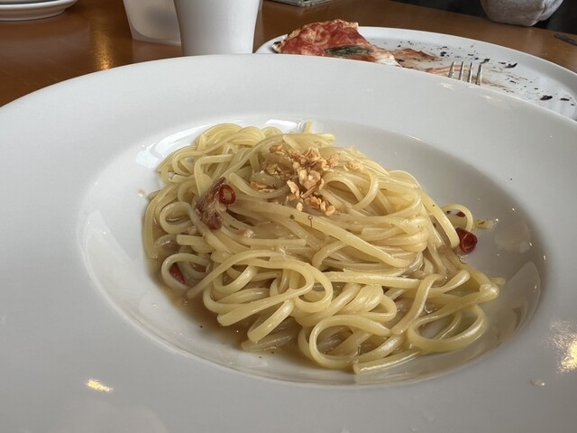 注文したのはマルゲリータとニンニクたっぷりのニンニク激マシのペペロンチーノ。このパスタは美味かった。ピザはこんなもんかと。