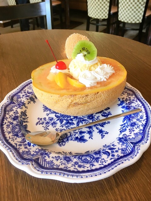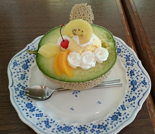 舞鶴の国道175線沿いにある季節のパフェが食べれる喫茶店。8月はメロンを半球使ったパフェも販売していました。