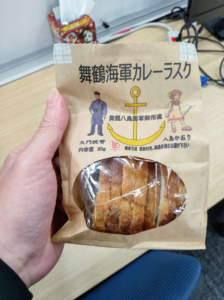 海上自衛隊舞鶴岸壁の一般公開で、自衛隊内の売店で限定販売してるカレーパン! 具がシャキシャキで、後からジワーと辛さが来るテイスト。 最大の特徴は揚げパンでは無く、普通の... 詳細を見る