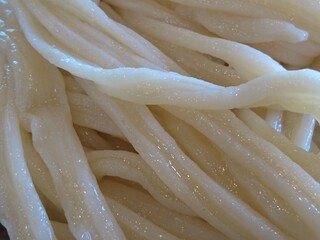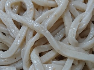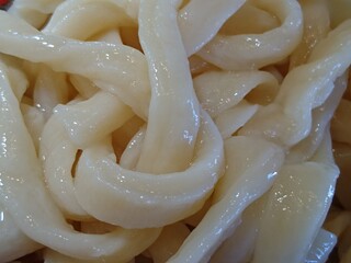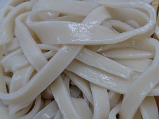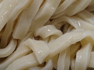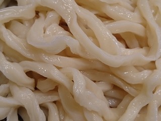 細麺でも普通の武蔵野うどんくらいのごっつさがあります。また限定で「ひもかわ」もあり、極太麺との合盛でオーダーできます。