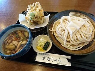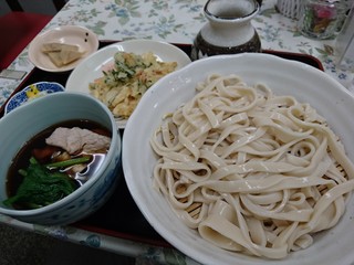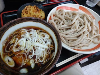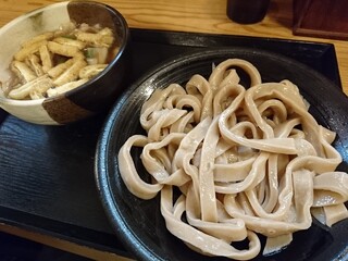 「うどん」も「天ぷら」も家庭の味です。「うどん」は武蔵野うどんとしては柔らかく喉越しで味わえる程度のコシです。つけ汁も家庭的な味、「かきあげ」も同様です。
