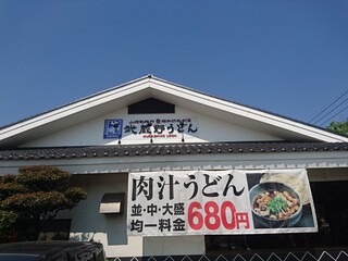 『肉汁うどん』720円は、武蔵野うどんとしては色が白くて細目できれいです。ちょっとよれていて手打感があり、肉汁にはネギがたっぷり、豚肉はパラパラ入っており味付けは濃くも薄くもなく、うどんとの相性も良くて喉越しで食べられるタイプでおいしいです。