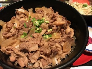 こちらも気になっていたお店さんです。平日の開店ほどなく伺いました。本日のランチ(若鶏の照り焼き丼)¥700牛丼¥780をオーダー。牛丼は玉ねぎとともに入ったしめじの食感がよく、味もよくしみて、お肉もやわらか。