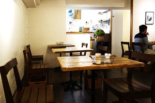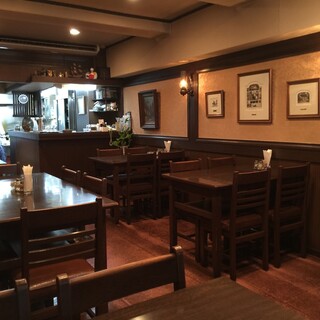 ブラウンを基調にした温かみのある店内には、テーブル席とカウンター席があります。