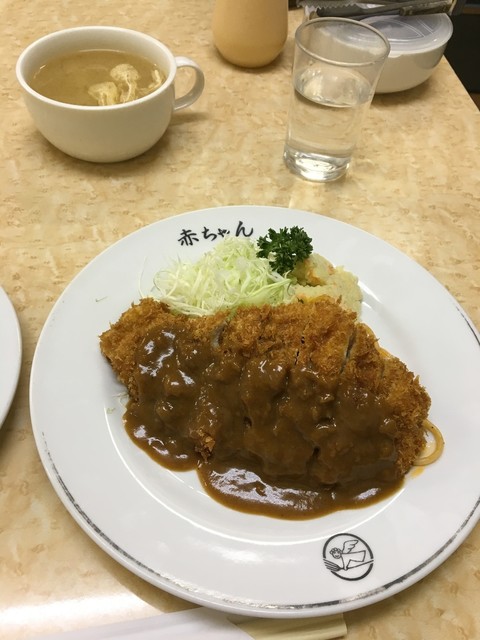 お皿に大盛りのライスと一緒にお待ちかねのキチンカツが登場♡そうそう、赤ちゃんのソースはこんな味だったよなぁ。と、思いつつ、おいらはここに少しだけウスターソースを垂らすのが好き。