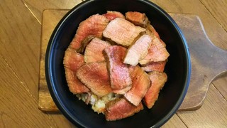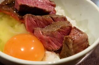希少部位のトモサンカクを使ったステーキ丼で、やわらかく濃厚なお肉をイタリアン風味で堪能できると評判です。
