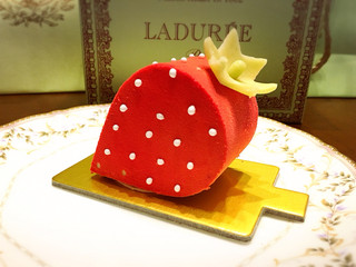 かなりインパクトのあるデザインのスイーツ「フレーズラデュレ」、イチゴのムースクリームやコンフィが使われています。こういった斬新なスイーツが味わえるのは【ラデュレ サロン・ド・テ 銀座三越店】。