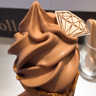 「クレーム ド ショコラ」を注文。3分位の待ちで到着です。甘さより先に濃厚なチョコレートが来る。そして何よりクリーミー。不思議なくらいの食感。ヤバイ。今迄食べたチョコレートのソフトクリームの中で、一番好きかもしれません。贅沢な味です。刺さっているリーフ型のチョコレートもかかっているチップもきちんとアクセントとなっていて美味しい。