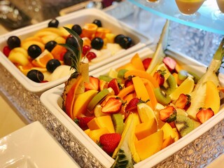 パフェのデザインが素晴らしい!カラフルなメロンボールが並んでいたり、モモが綺麗に飾り付けられていたりと、テーブルへ運ばれてきた時に写真を撮りたくなるものばかりです。