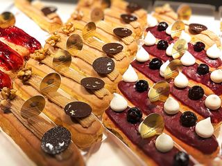 お店を訪れたら、ぜひ注文したいのが登場以来人気を博している「マルコリーニエクレア」。チョコレートだけでなく、バニラやキャラメルといったフレーバーを季節ごとに6種類展開しています。