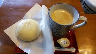 人気の和スイーツは酒まんじゅうやそばだんご!コーヒー、紅茶、緑茶とそれぞれお手頃価格でセットにできます。