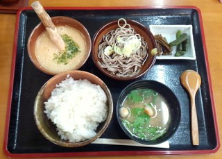 「とろろ」のほうは、すり鉢と山椒のすりこぎが付いてきて、自分でごりごりと混ぜてご飯にぶっ掛けます♪これが楽しいですね~♪「とろろ」はおそらく、大和芋と長芋のブレンドだと思われます。なかなかしっかりと粘りも出て、風味も良くてめっちゃ美味しい♪