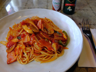 ナポリタンも人気。玉ねぎやピーマンなど具材もたっぷり入っていて、ランチにぴったりのメニューです。