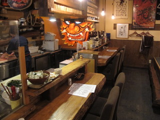 店内には44席もの席数があり、魚秀と同様大きなお面がディスプレイされています。