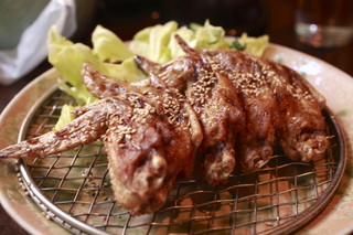 お店の看板メニューの手羽先唐揚は、キャベツとセットで提供されます。箸休めにもなりそう。