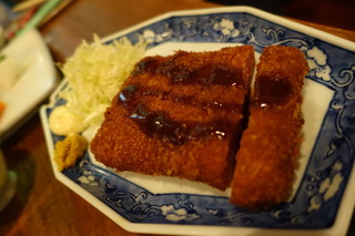 こちらの名物らしい「ポークステーキ特製生姜ソース」。別添えで、りんごのソースをかけていただくそうです。お肉はなんと!300gのボリューム!食べ応えがあります。りんごのソースはりんごよりガーリックの香りが強く、元気が出そうな味。