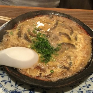 こちらは「丸煮 柳川鍋」。グツグツと煮込まれており、熱々の状態で楽しむことができます。