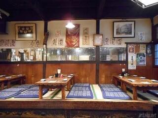 奥の座敷で大宴会も開けるそうです、こんな歴史ある店で、飲み会なんか開けたら素晴らしいね。店内は趣きのある見事な造りです、神棚や梁、柱など年代を感じます。タングステン光の明かりの具合もちょうどいい感じで落ち着きますね。