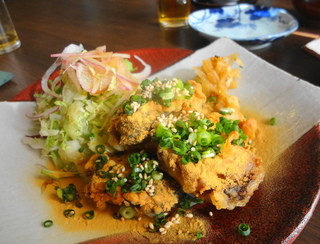 まずは前菜6品盛り合わせ。盛り付けが美しい。カマス、牡蛎、焼麻豆腐、モズクの酢の物などなど。カマスのお造り(刺身)はプリプリして美味しい。牡蛎の潮煮は、塩味で美味しい。